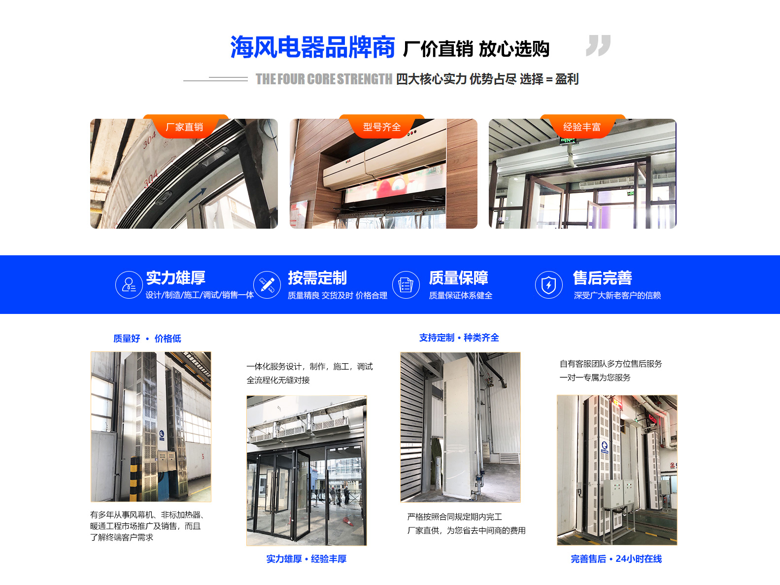 多年從事空調、風幕機、非標加熱器產品銷售,具有良好商業信譽和服務能力的經銷商網絡做為企業發展的源泉。“客戶的需求就是海風人的追求”做為海風人的服務理念 ...